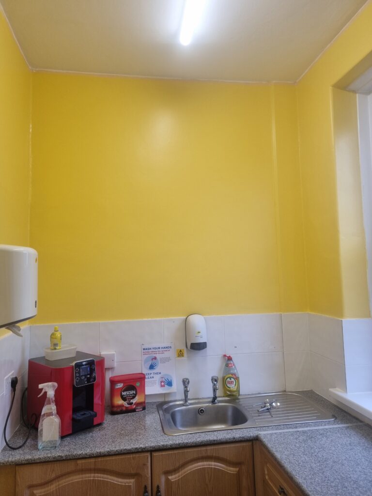 In all I painted over 44 different areas solo at the Head Office including the Exterior.